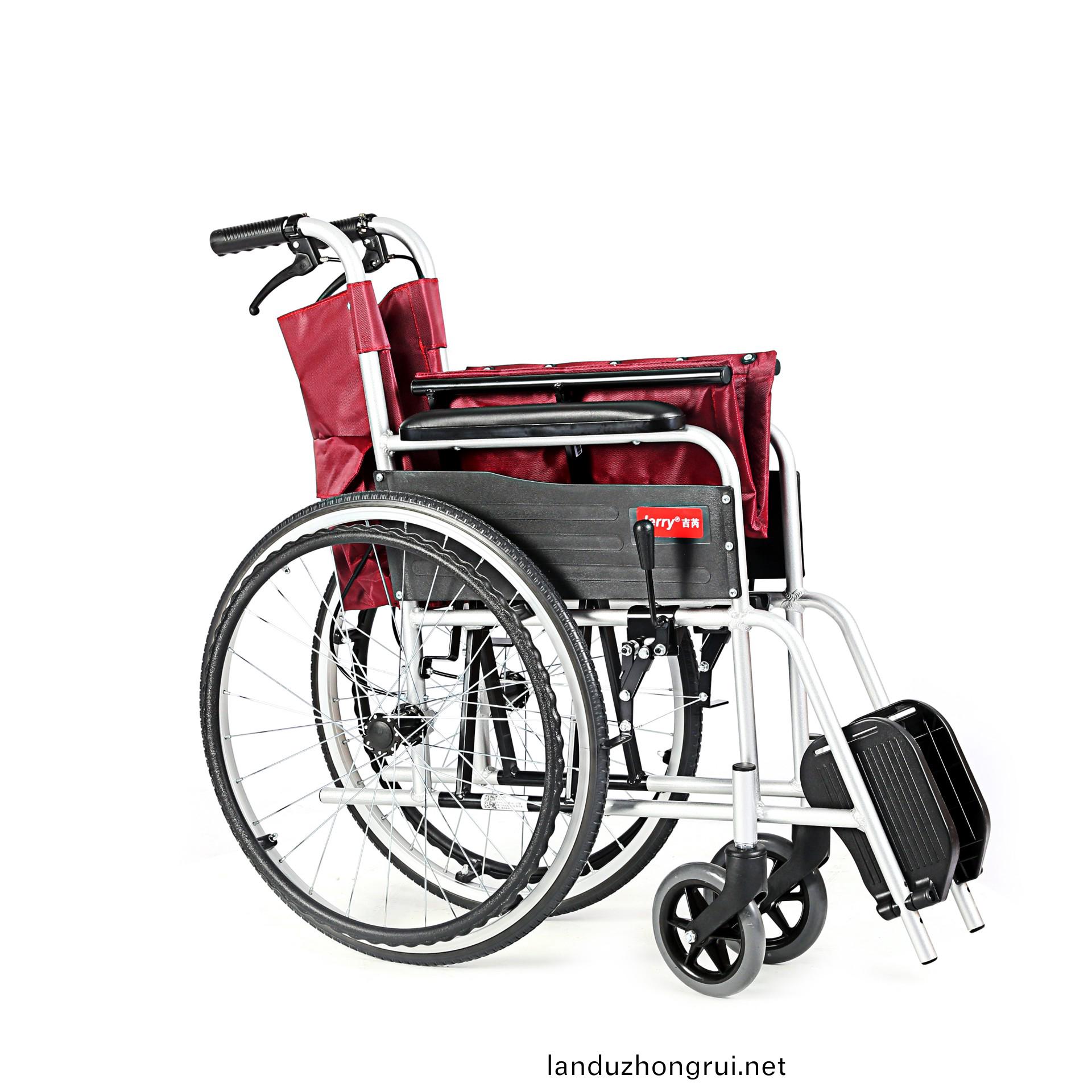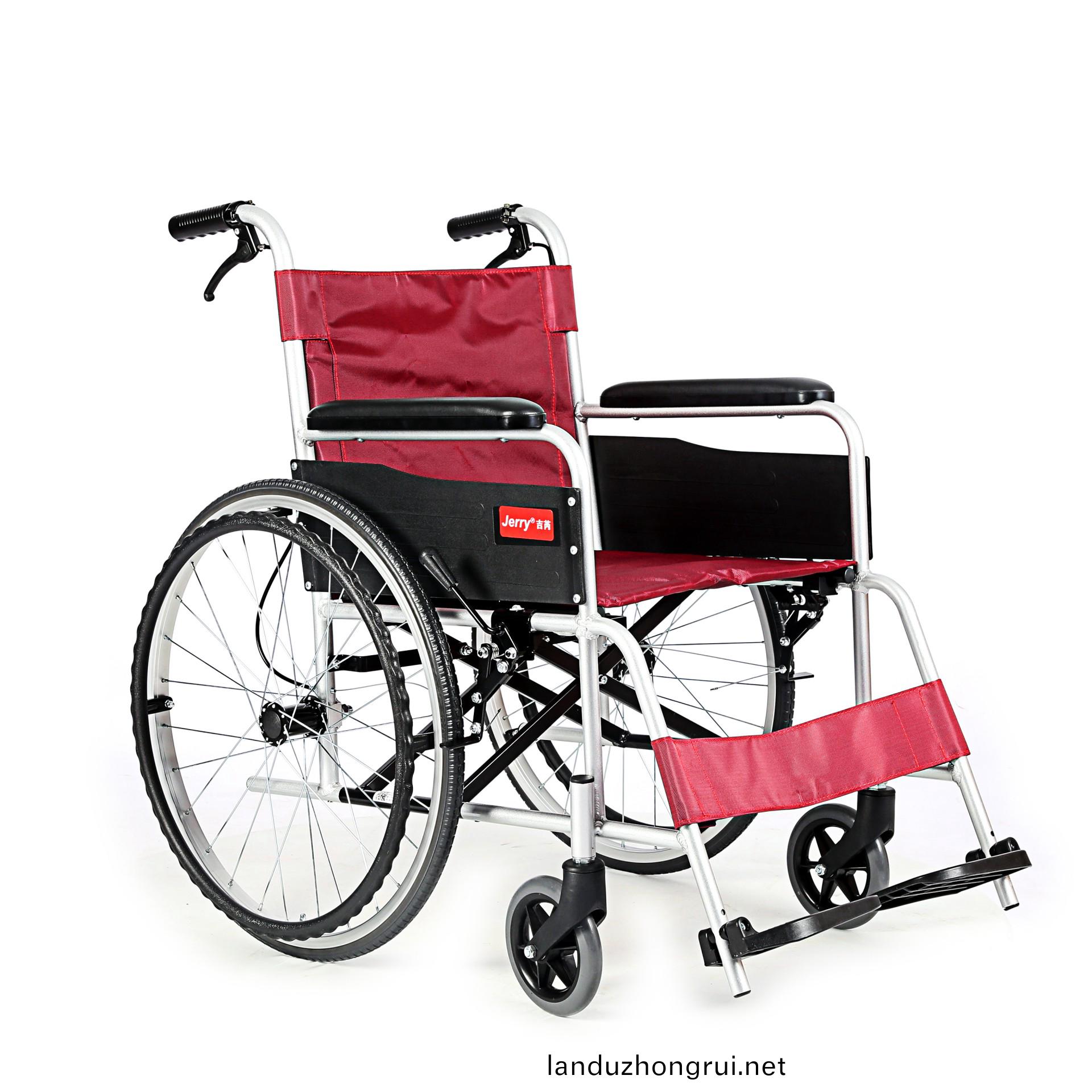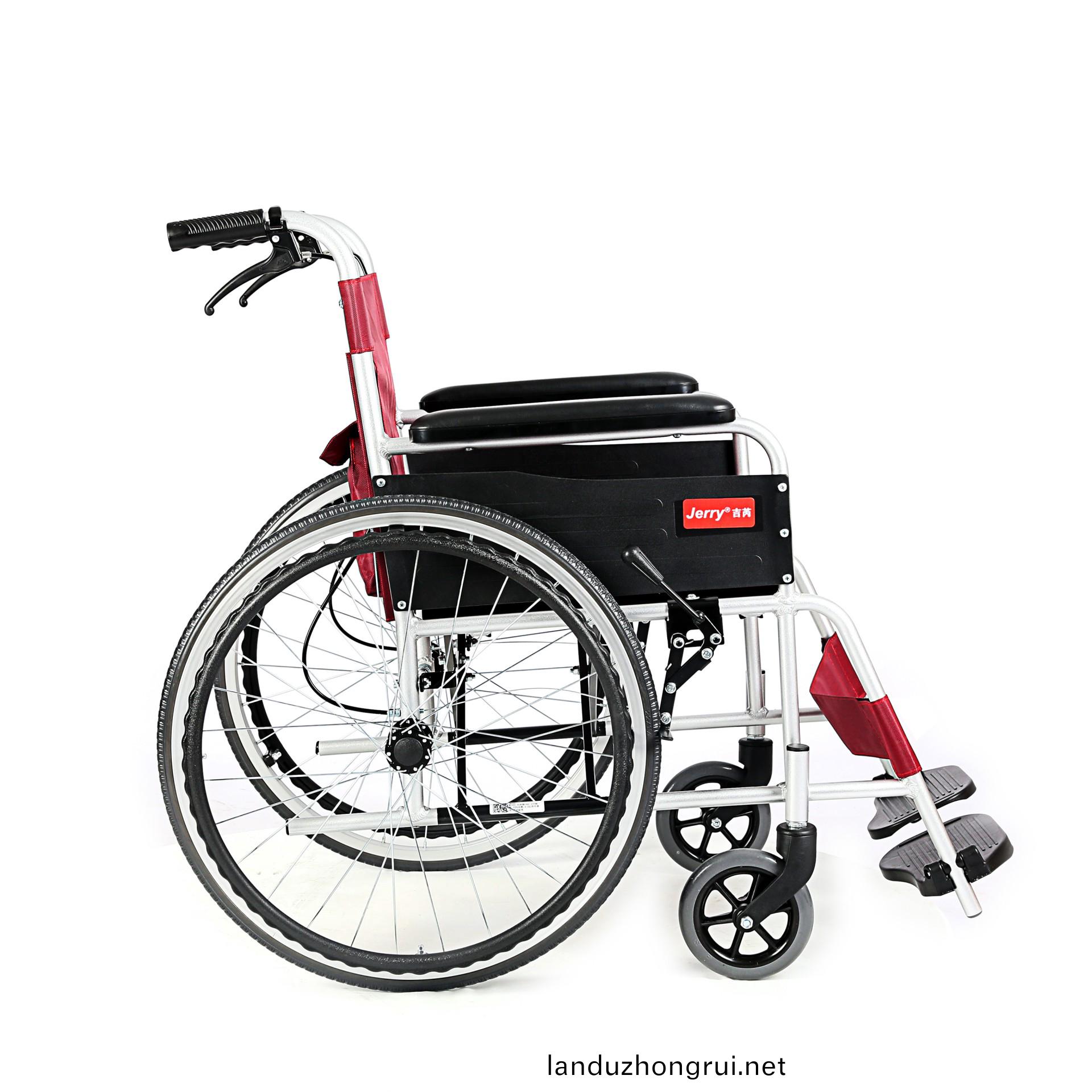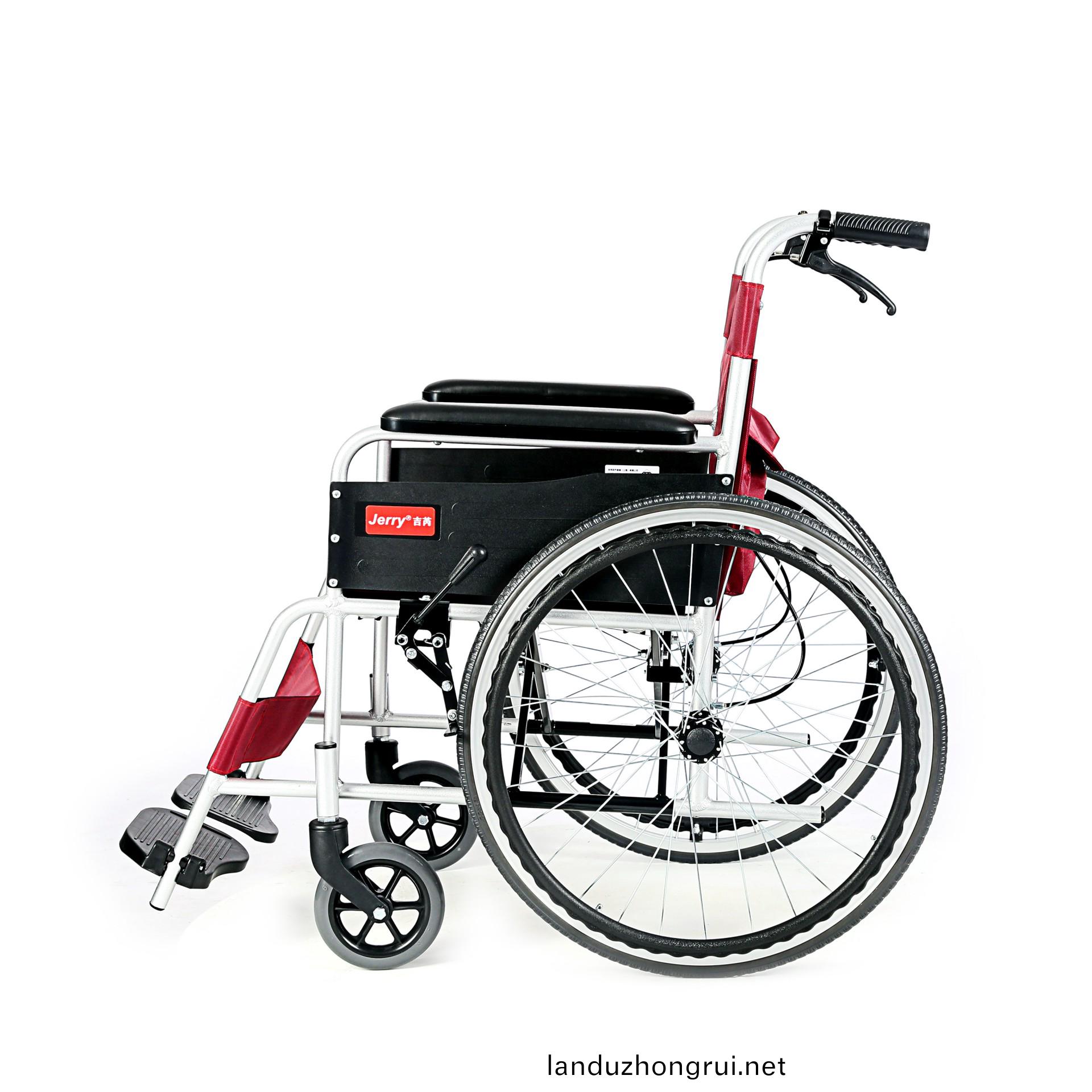 吉芮医疗手动轮椅,铝合金车架、轻量、轻便,紧凑式设计、易于携带,可折叠,连动式刹车机构。
