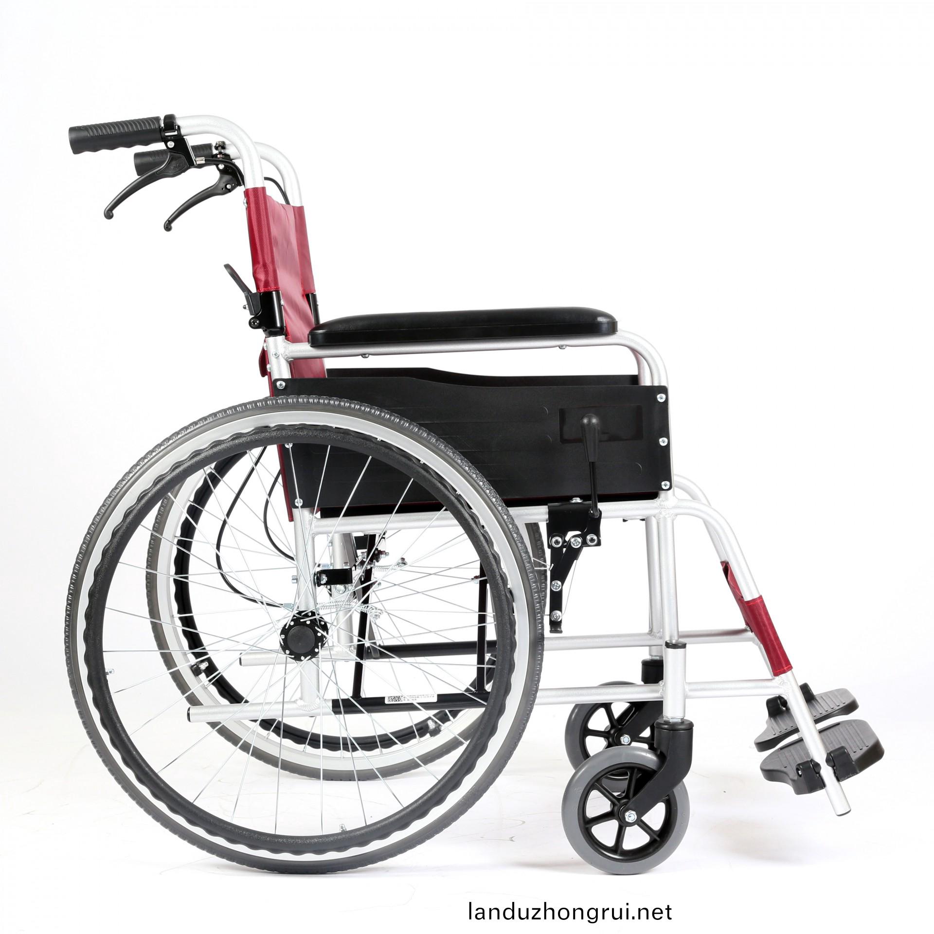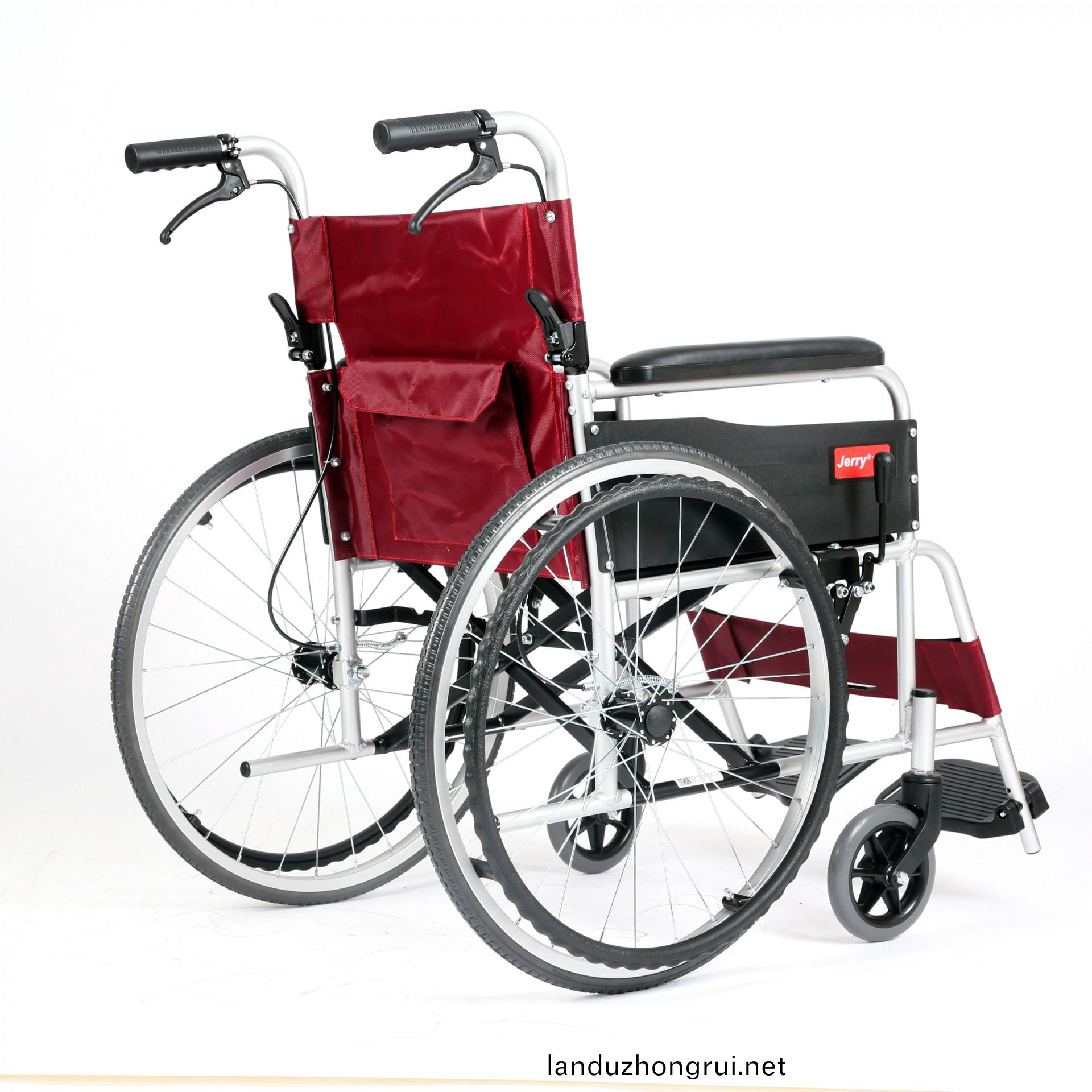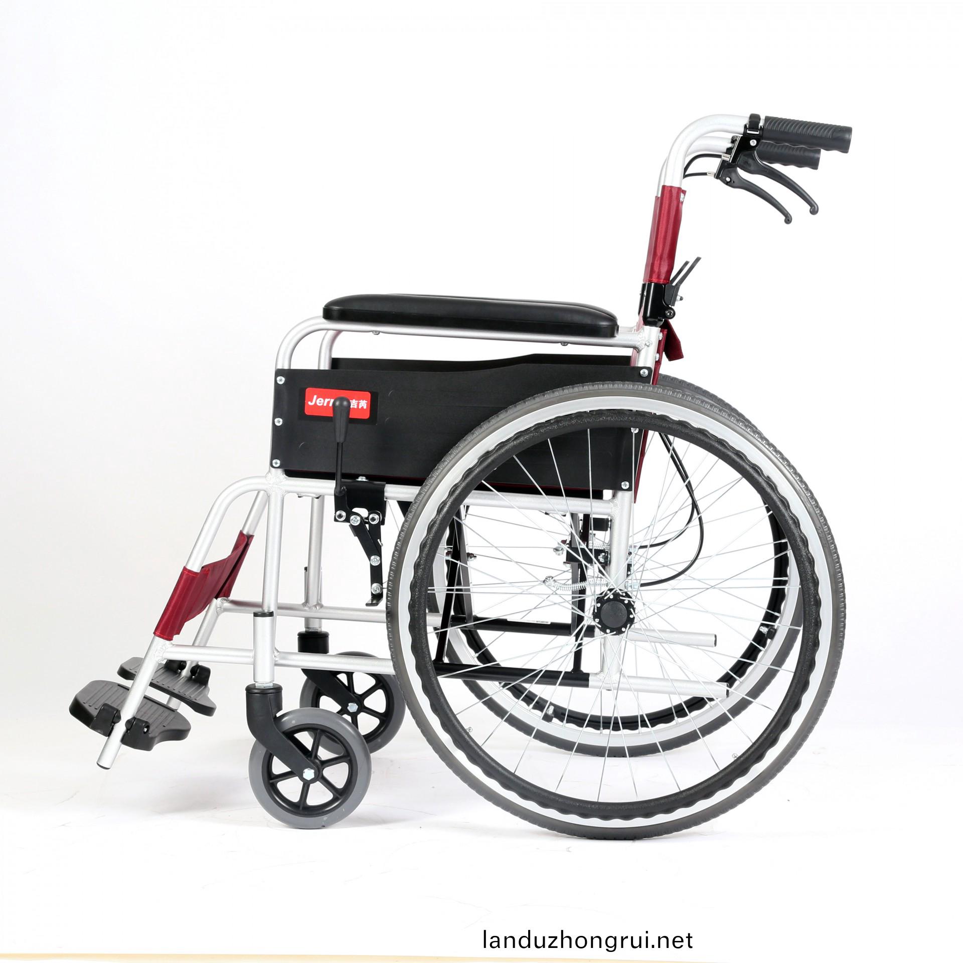 吉芮医疗手动轮椅,铝合金车架、轻量、轻便,紧凑式设计、易于携带,可折叠,靠背可折叠、连动式刹车机构。