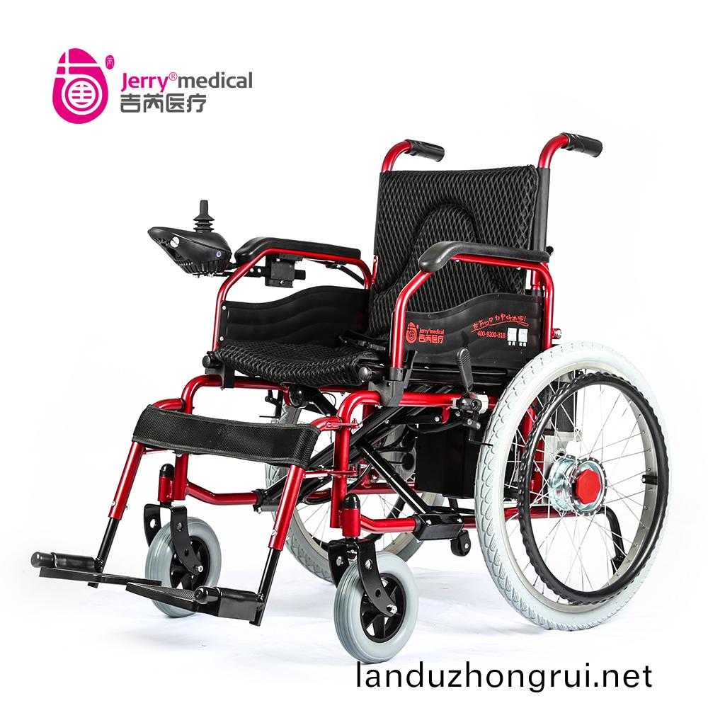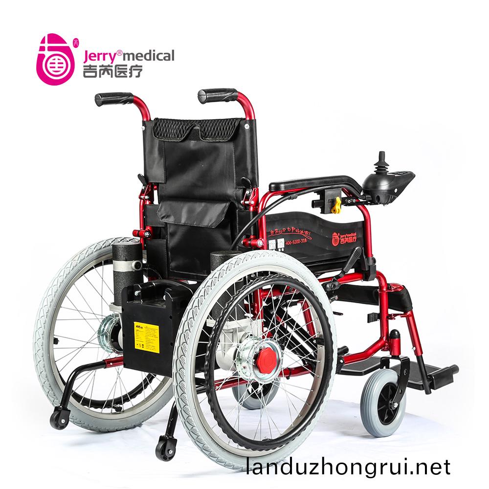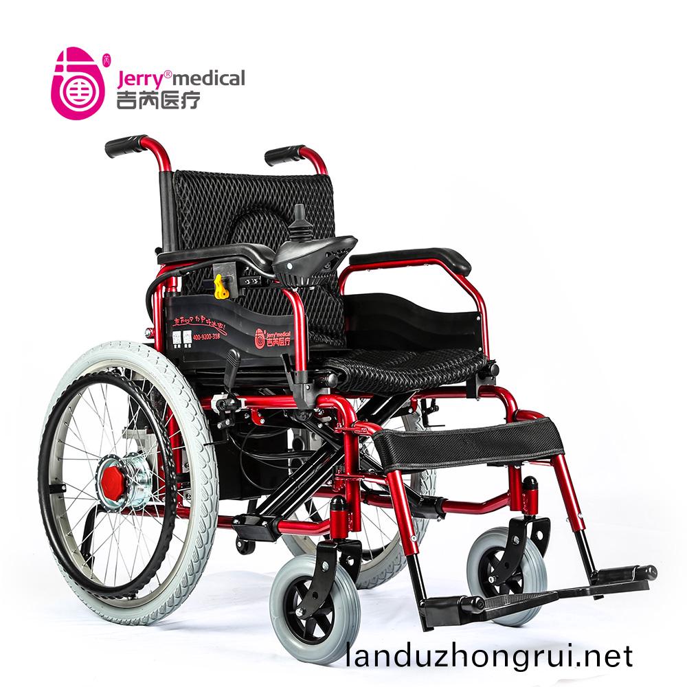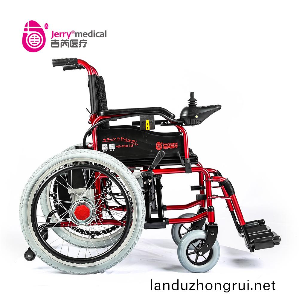 吉芮医疗电动轮椅,手动/电动两用,可折叠,可掀扶手,可调节可拆卸跨脚,控制器左右手可互换,采用台湾蜗轮蜗杆马达,全自动电磁刹车。