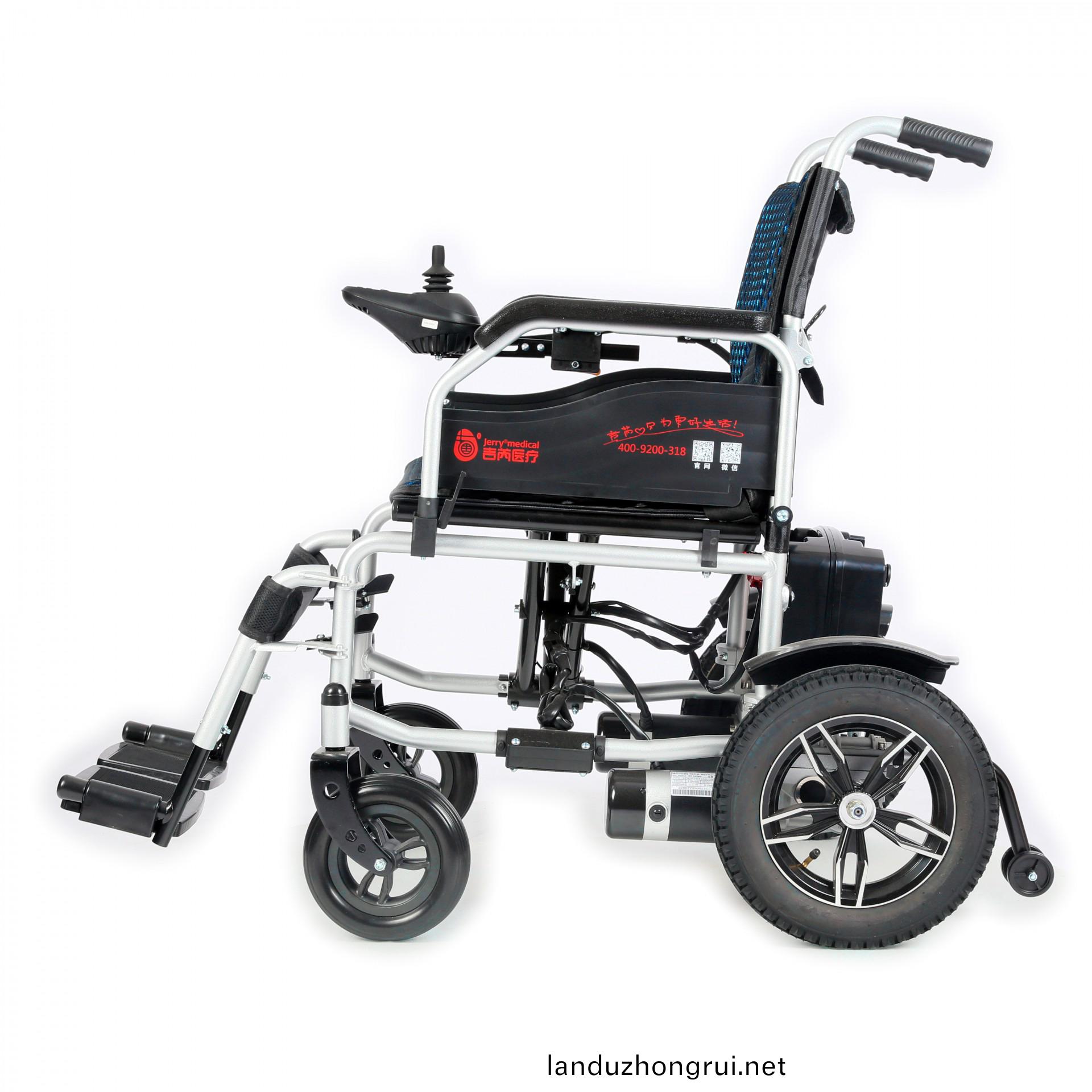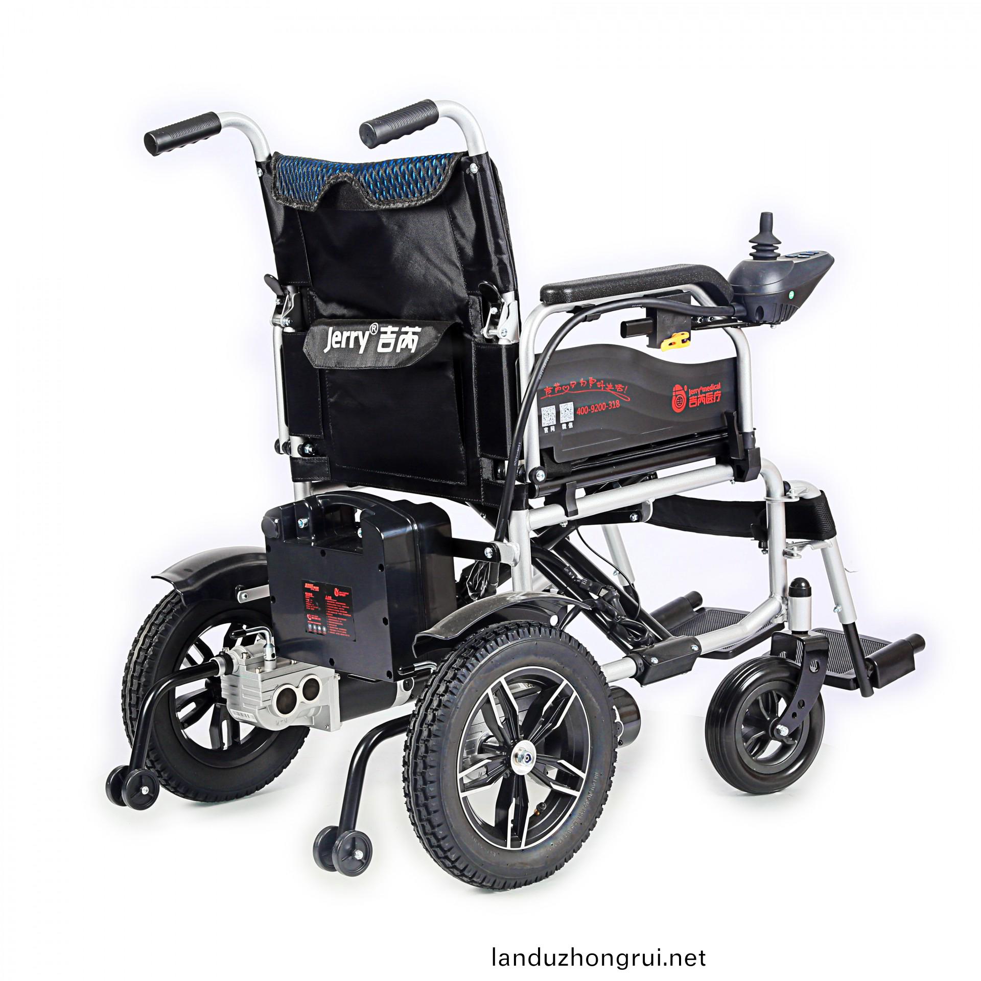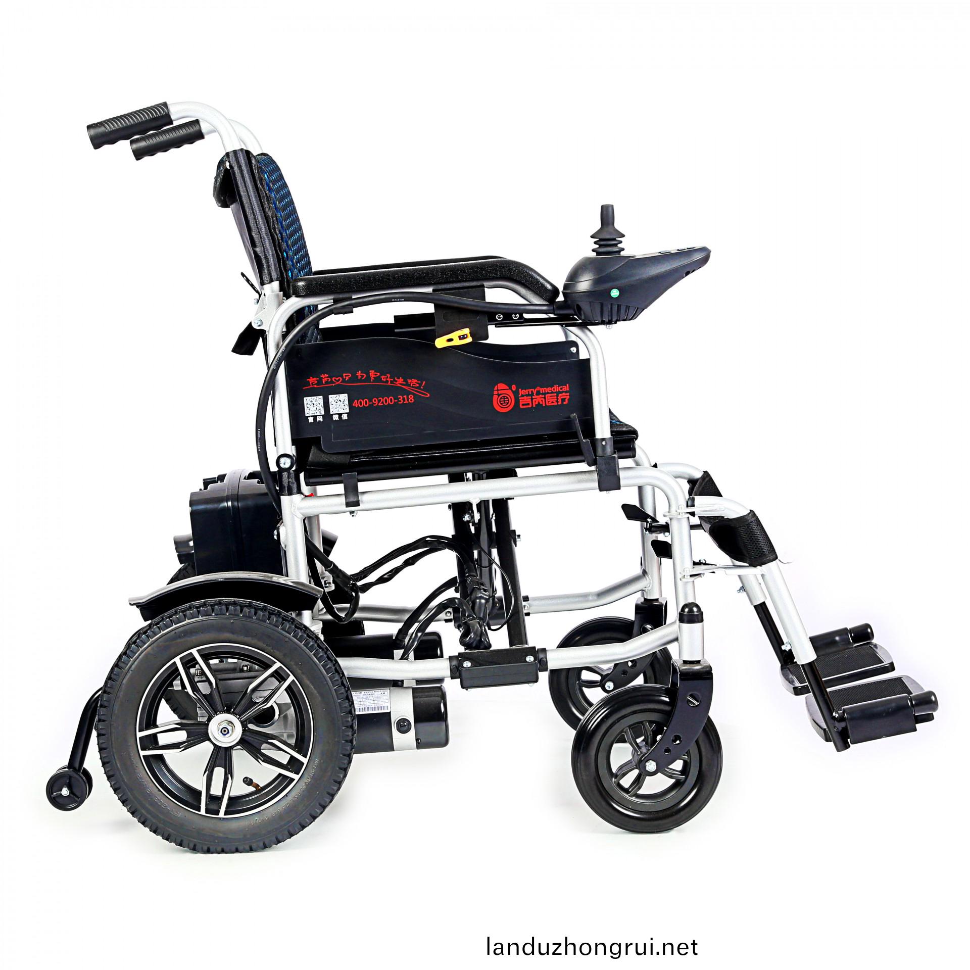 吉芮医疗电动轮椅,易于携带,可折叠,可掀扶手,可调节可拆卸跨脚,控制器左右手可互换,采用台湾蜗轮蜗杆马达,全自动电磁刹车。