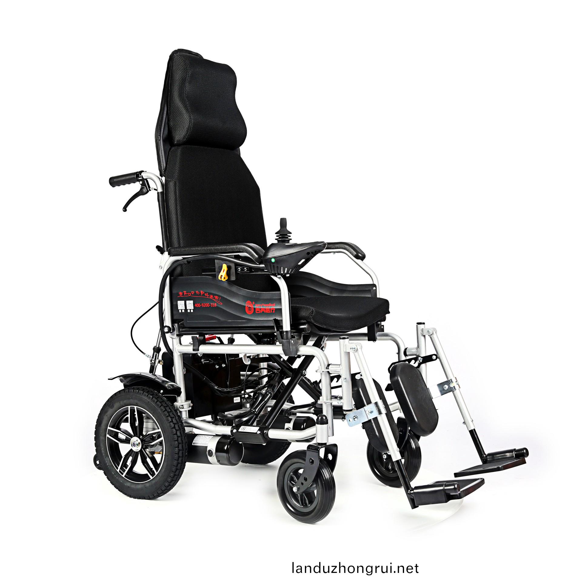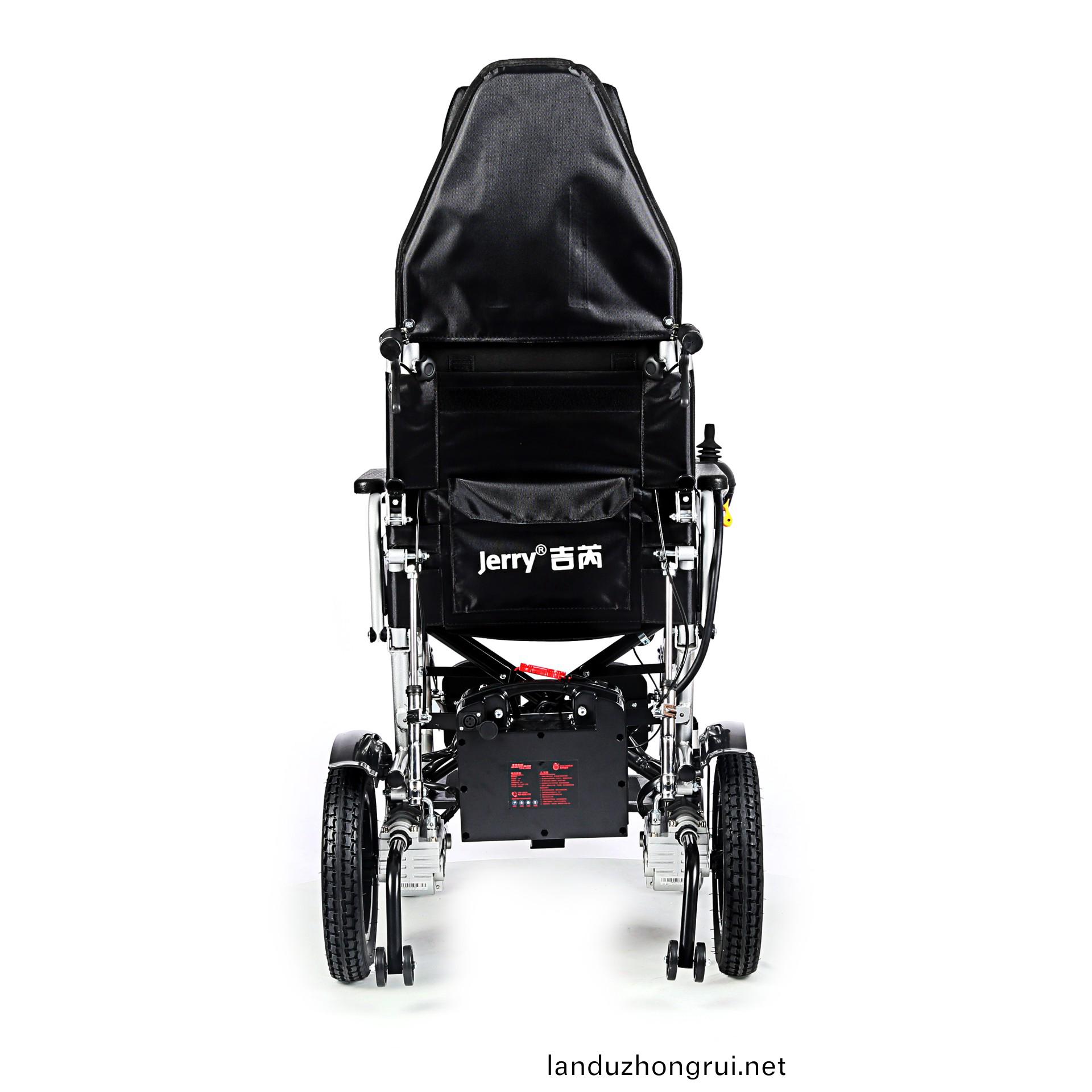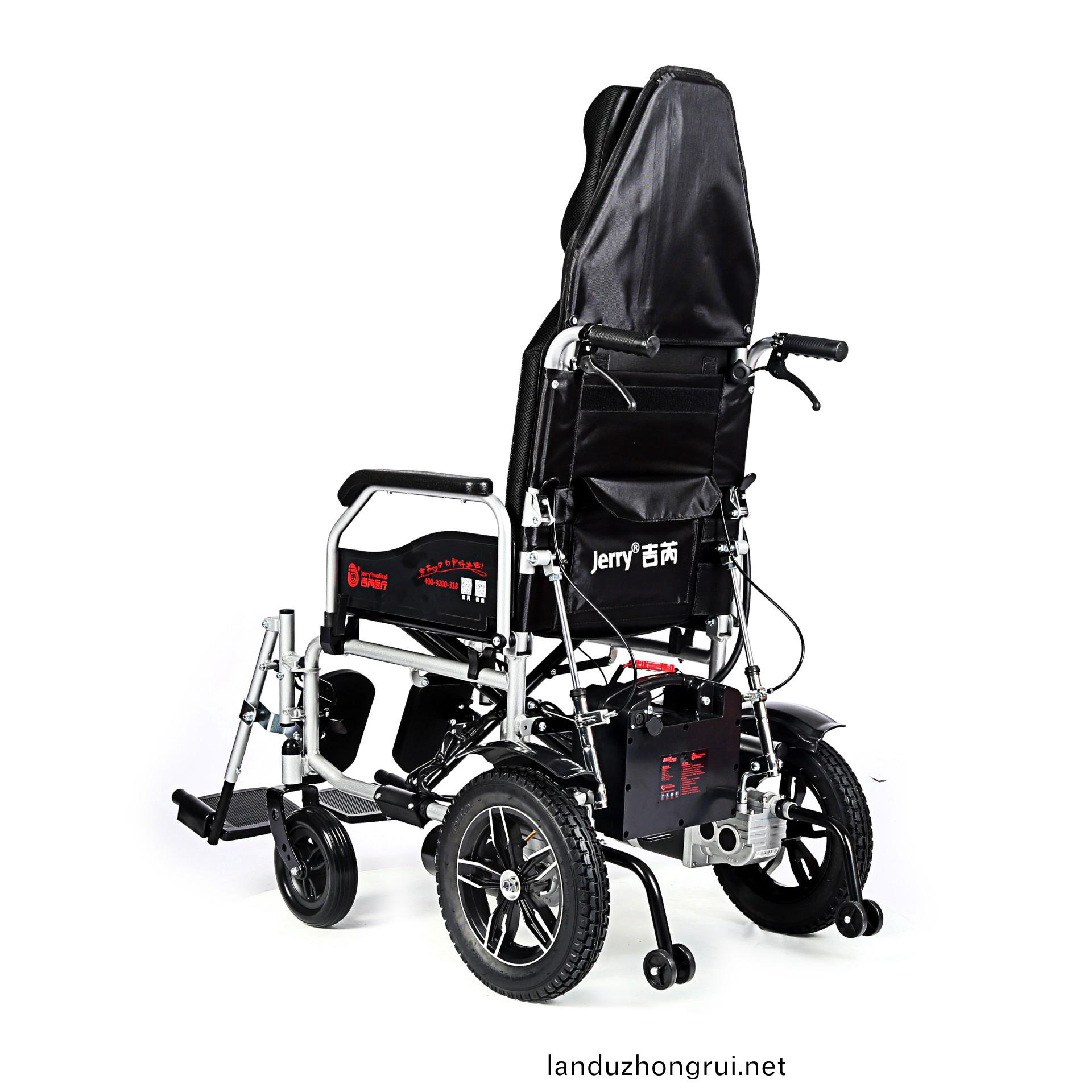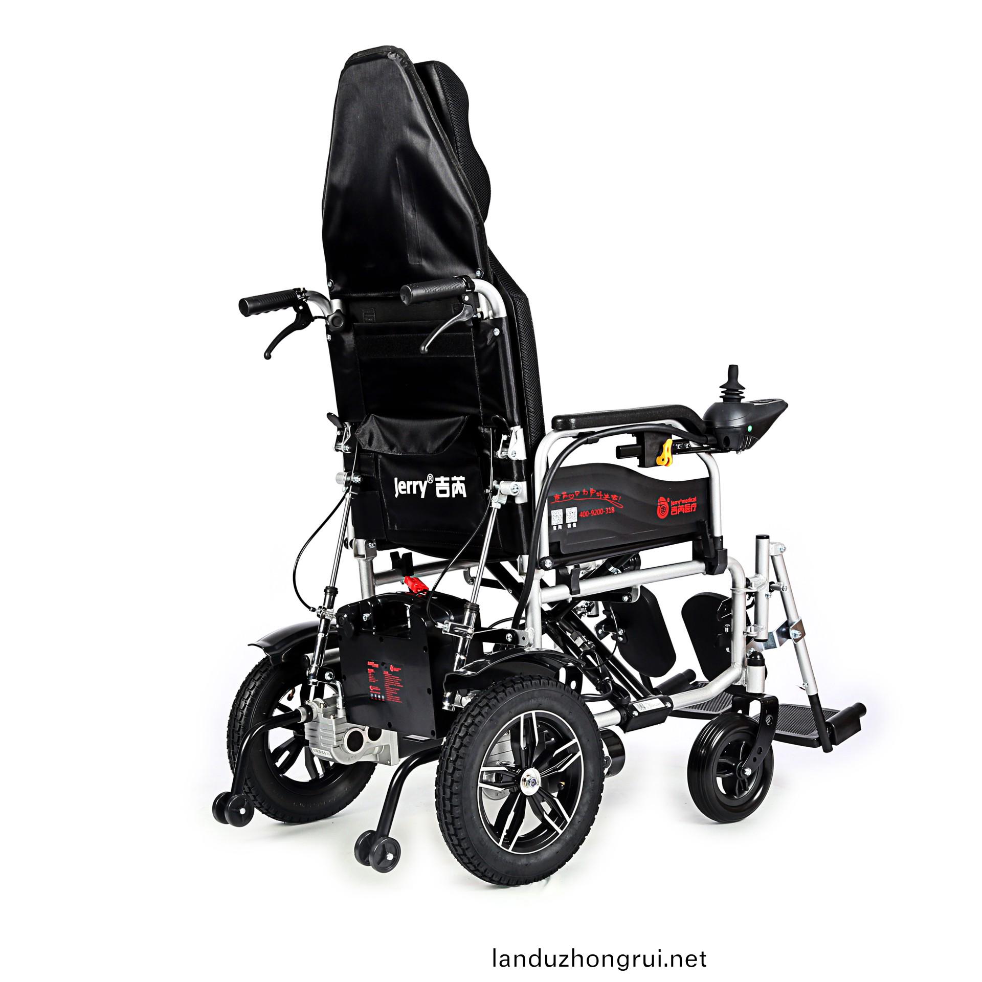 吉芮医疗电动轮椅,易于携带,可折叠,可掀扶手,可调节可拆卸跨脚,控制器左右手可互换,采用台湾蜗轮蜗杆马达,全自动电磁刹车,可手动抬腿,手动靠背。