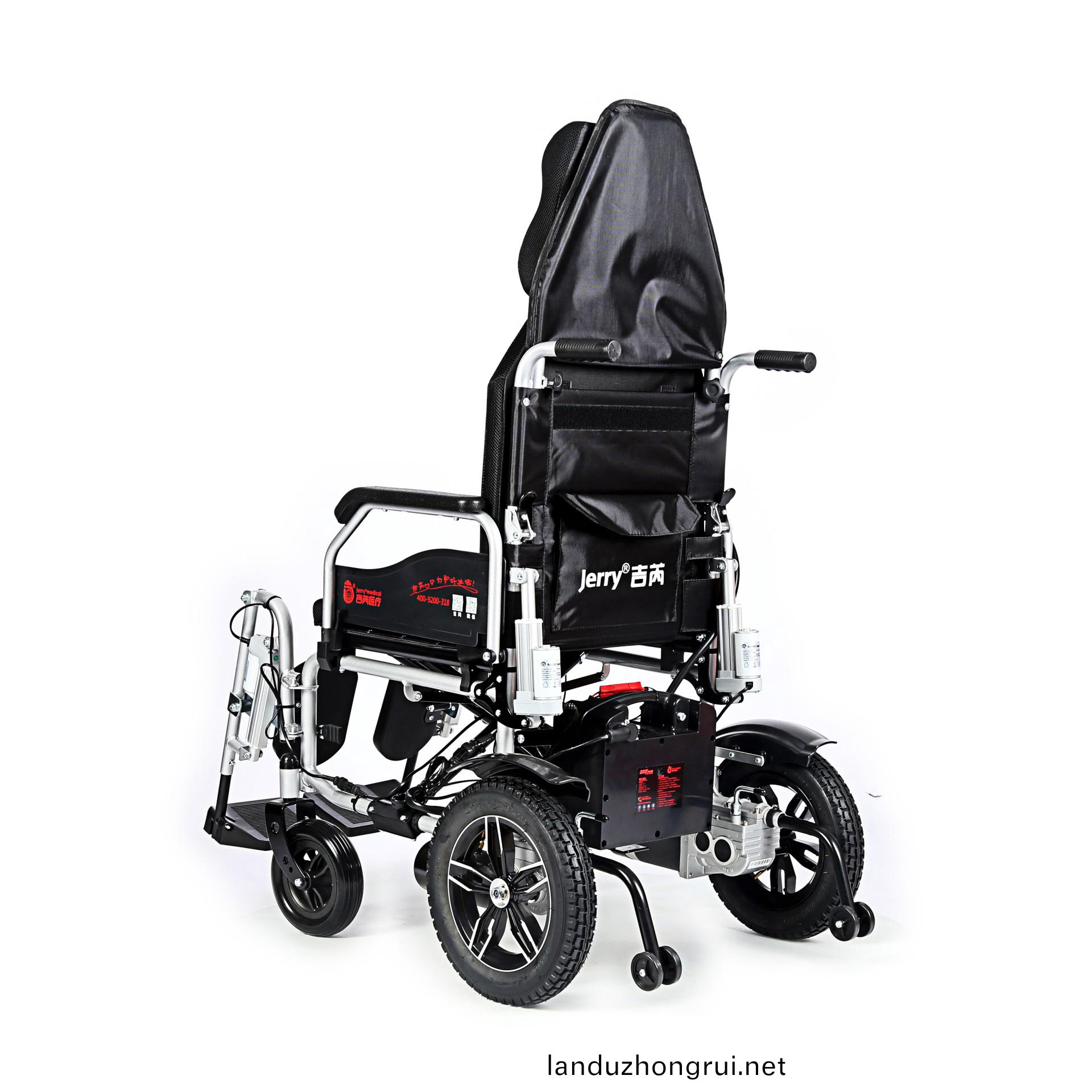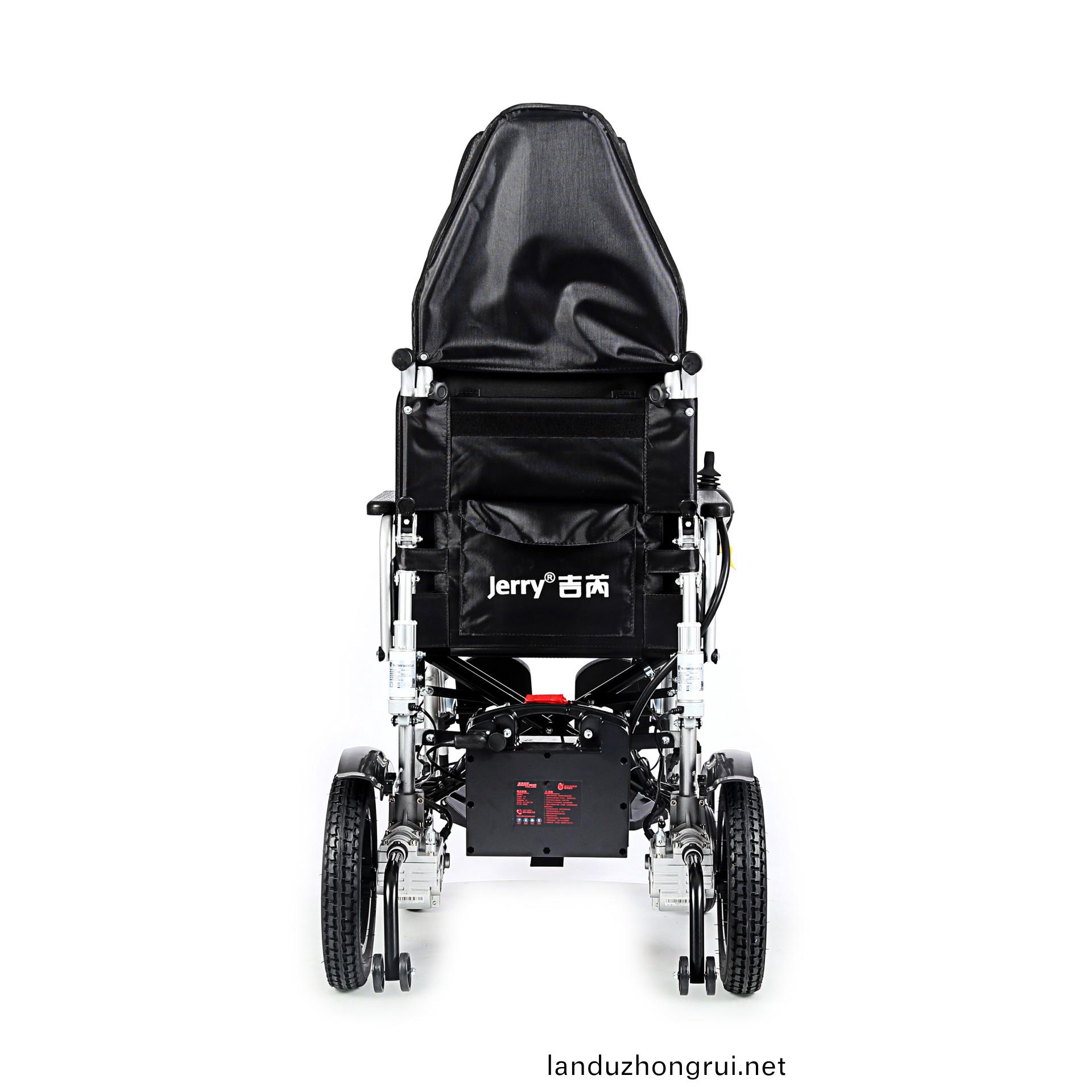 吉芮医疗电动轮椅,易于携带,可折叠,可掀扶手,可调节可拆卸跨脚,控制器左右手可互换,采用台湾蜗轮蜗杆马达,全自动电磁刹车,可电动抬腿,电动靠背。